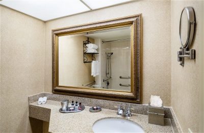 Feel at home in stylish Austin TX accommodations with granite vanity tops and porcelain tile floors.